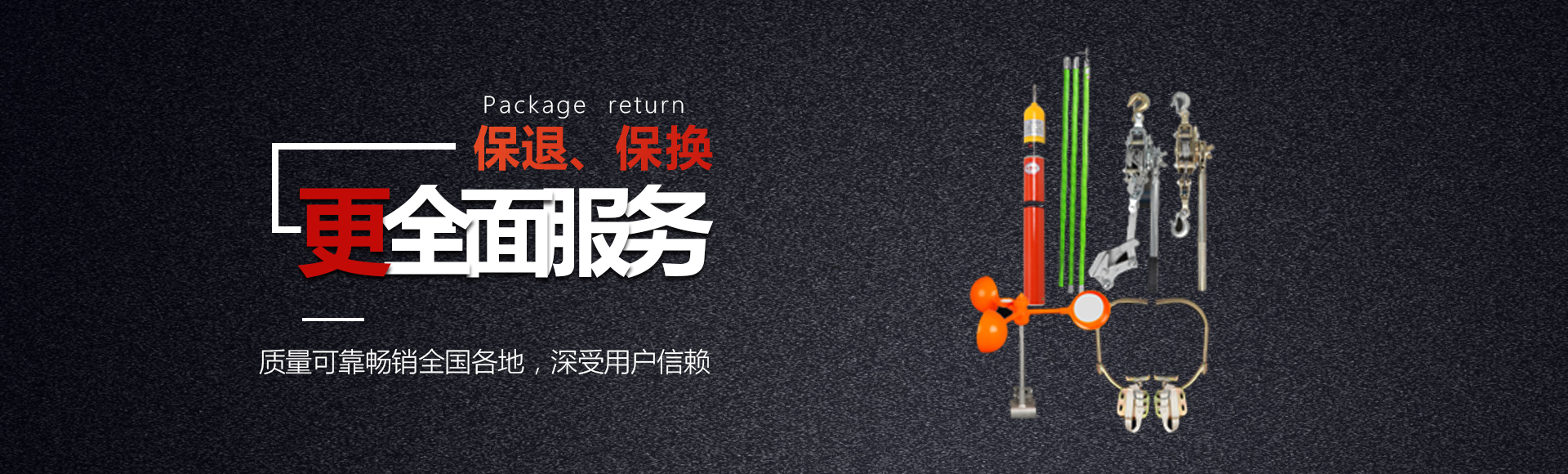 袖珍式低壓驗(yàn)電筆、高壓聲光驗(yàn)電器、高壓拉閘桿、安全接地棒、接地軟銅線、安全圍欄、安全帽、安全帽報(bào)警器、安全警告標(biāo)志牌、安全繩、安全帶、腳扣、各種緊線器、線路金具等